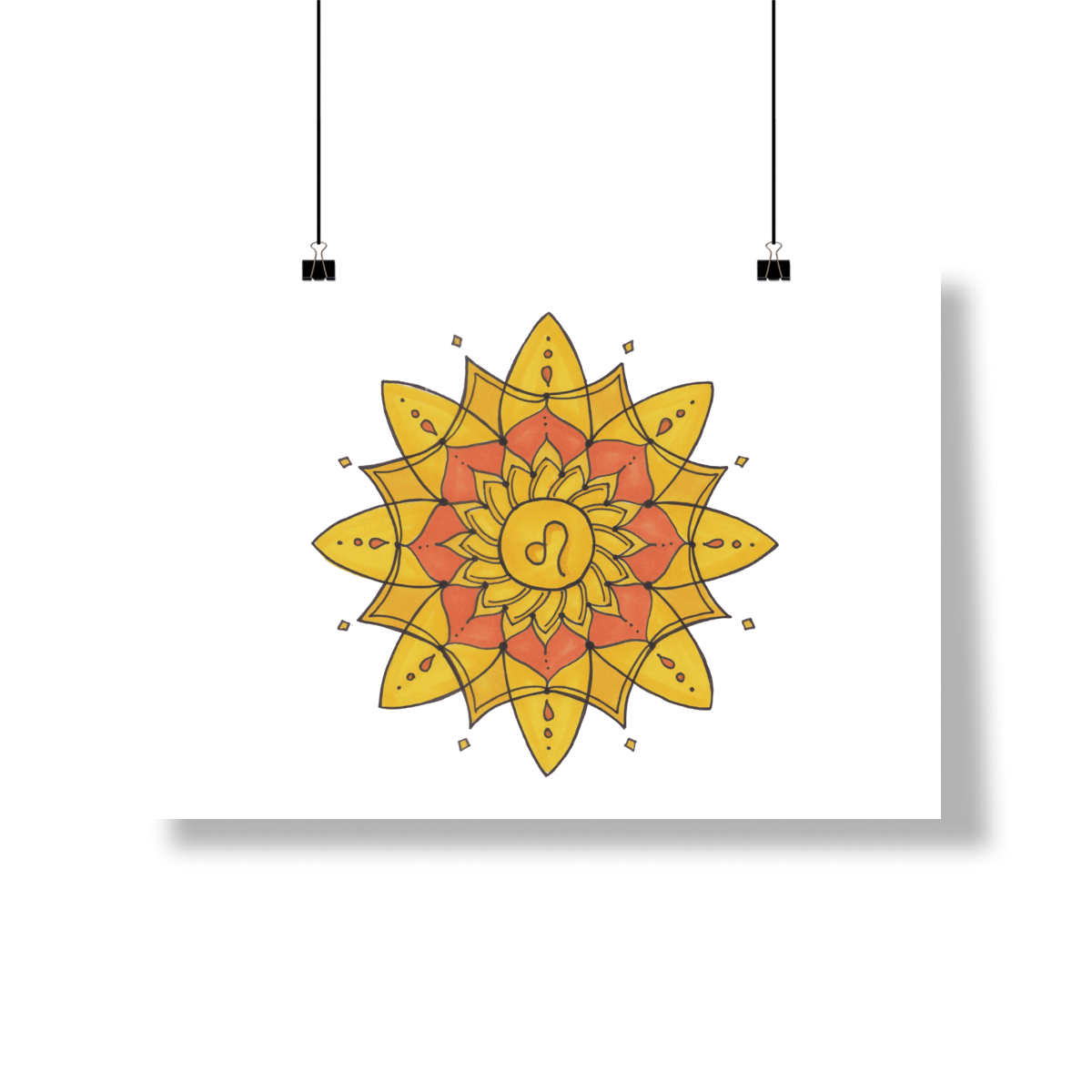 Brilhante e majestosa, a mandala leonina é o sol em plena forma! Cada traço irradia autoconfiança, alegria e poder pessoal. Leão é o coração do zodíaco, e aqui ele pulsa forte — dourado, vibrante e cheio de vida. Um lembrete: você nasceu para brilhar.