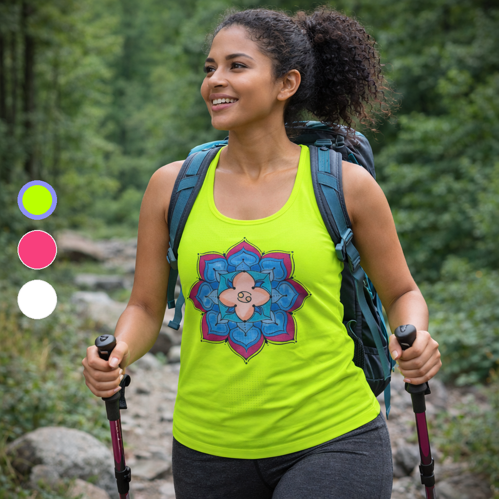 A mandala canceriana é um abraço de energia. Suas curvas suaves lembram ondas e conchas, guardiãs de sentimentos profundos. Representa o lar, o afeto e o instinto de proteger quem se ama. É pura emoção em forma de arte — doce, sensível e acolhedora.